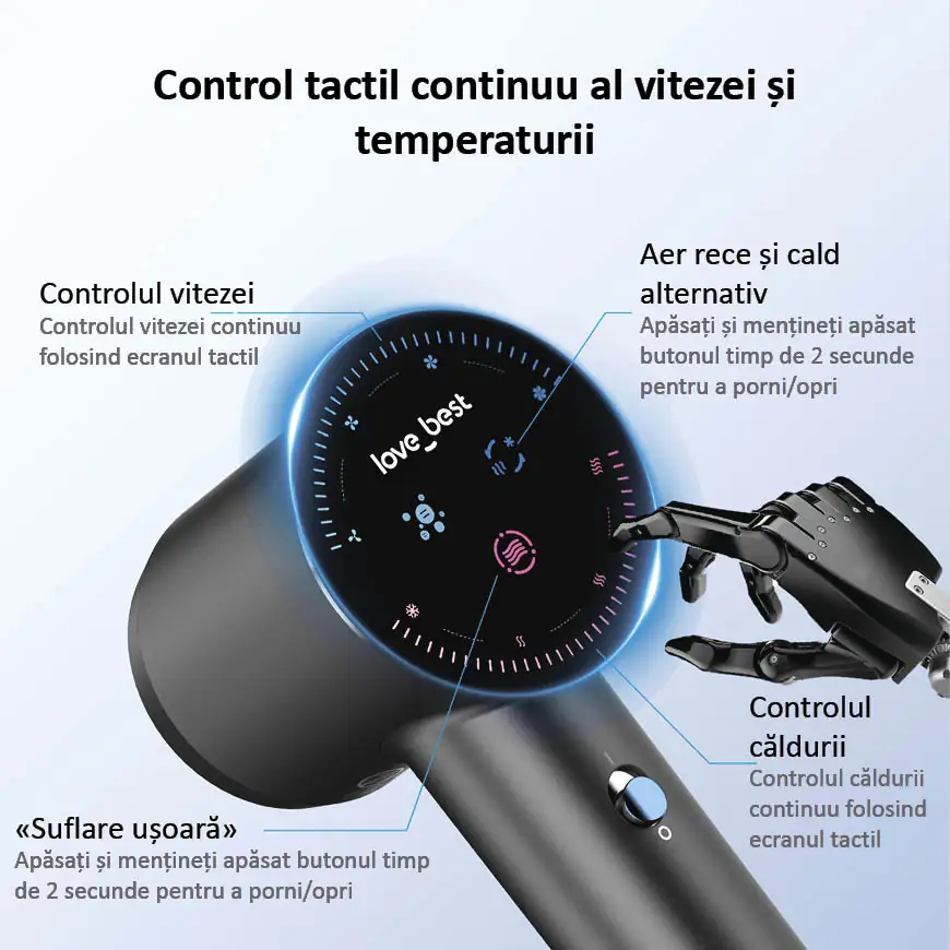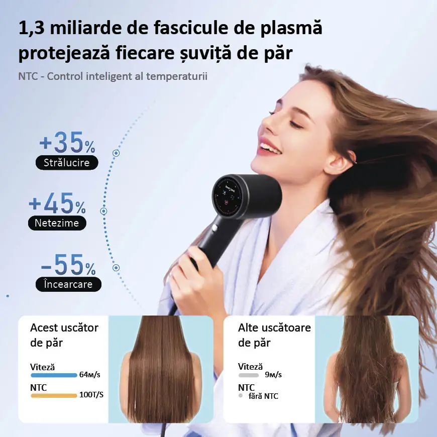 Uscător de păr de mare viteză cu tehnologie cu plasmă: