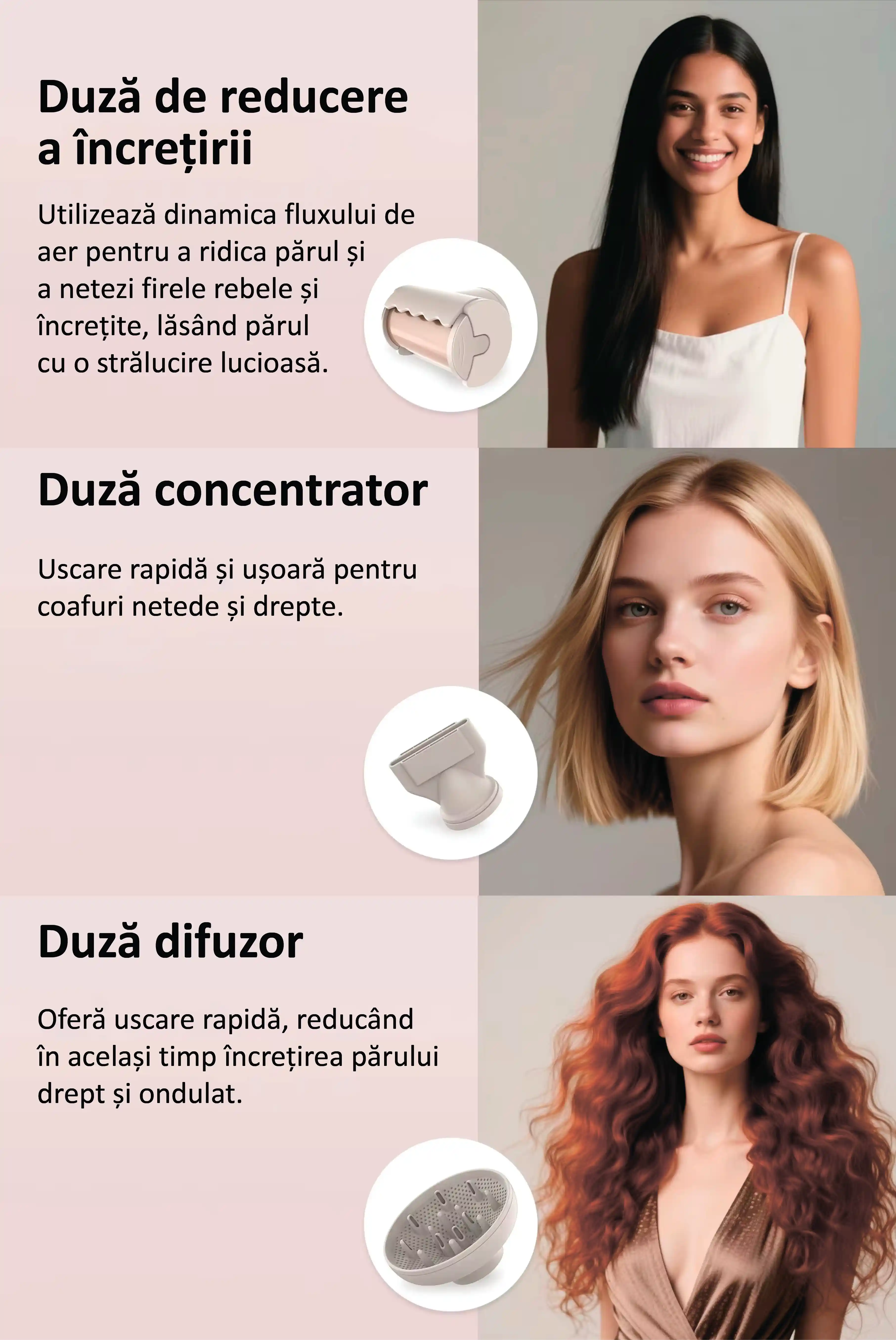- Pentru păr rebel, Concentrator, Difuzor