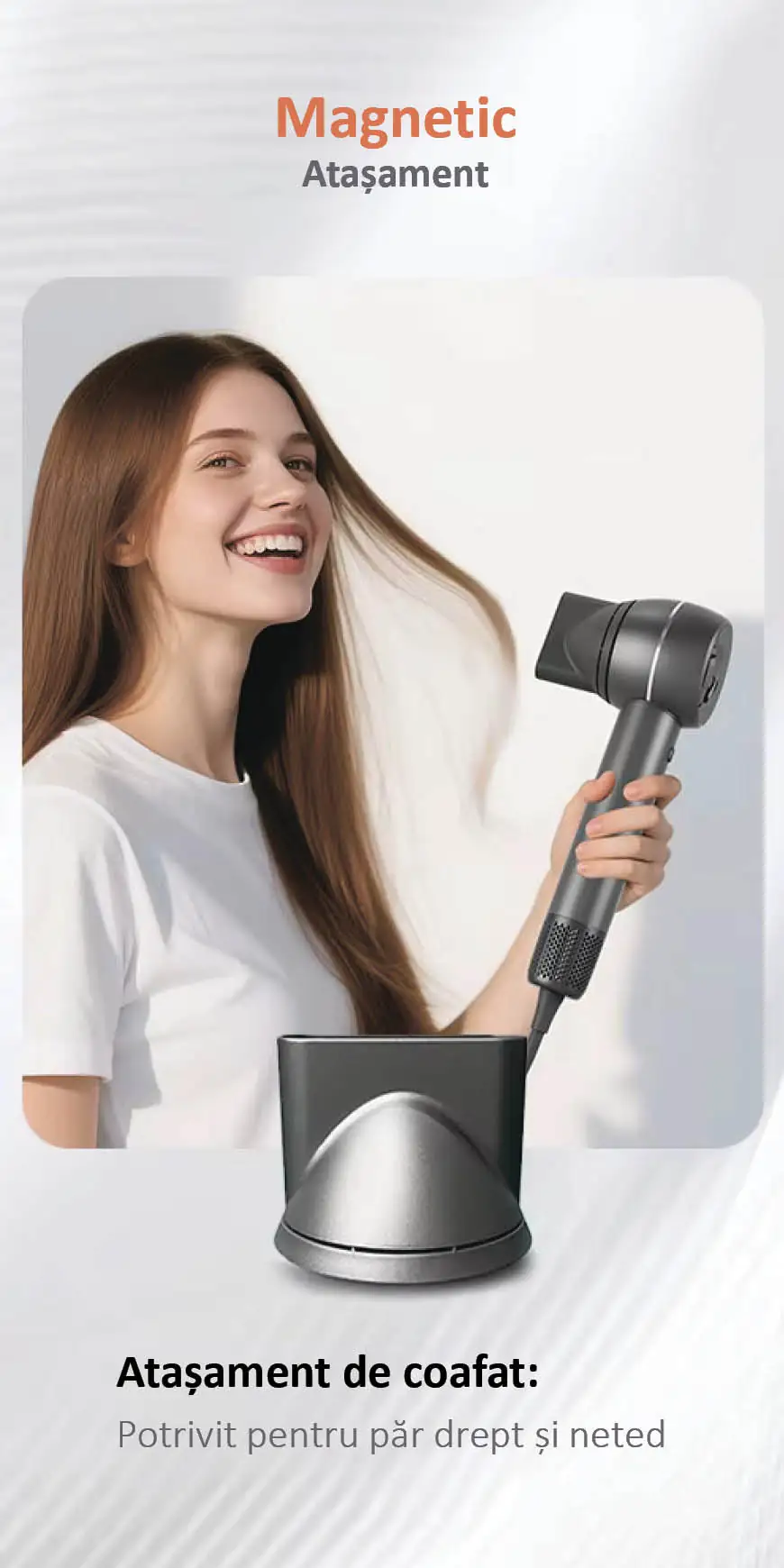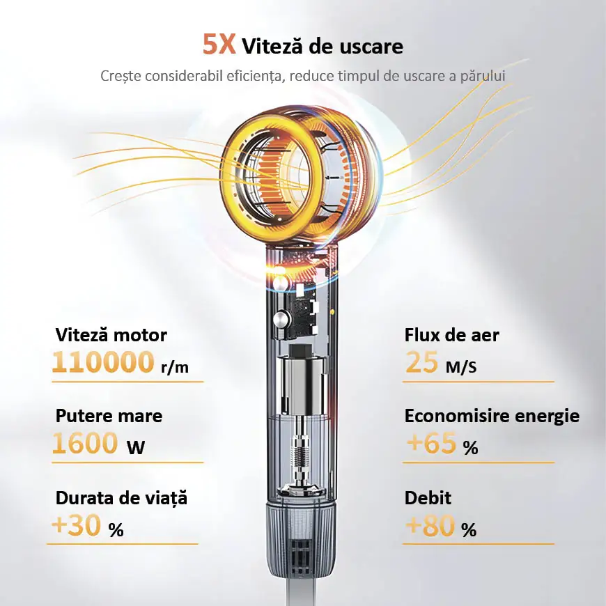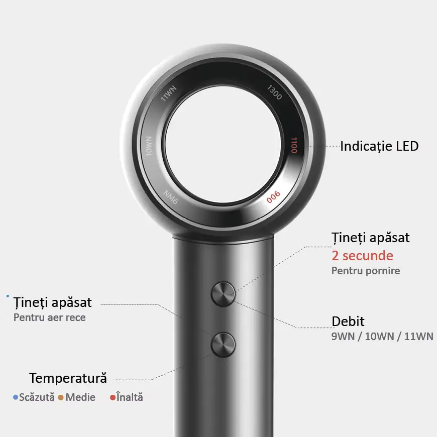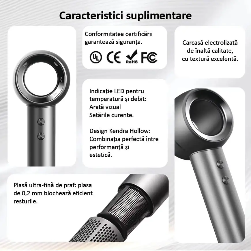 Concentratorul inclus direcționează fluxul de aer pentru o coafare precisă și lucrul la rădăcină.